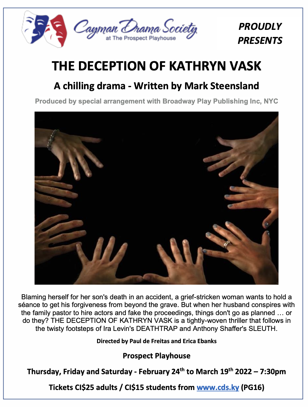 The Cayman Drama Society presents the play “The Deception of Kathryn Vask” by Mark Steensland