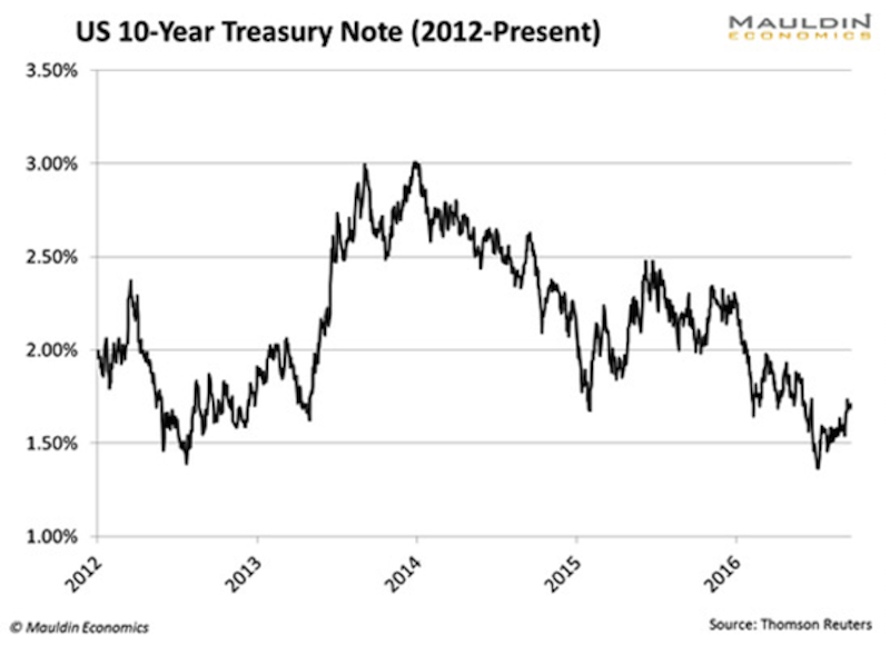 So yes, if the duration of a 10-year note is 9, and interest rates rise from 1.6% to 2.6%, the bond will lose approximately 9% of its value.