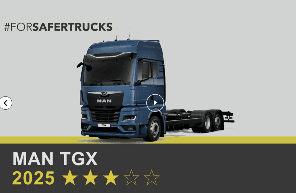 MAN, the German truck company, declined to take part, but Euro NCAP sourced a TGX model from the market for assessment. It was awarded three stars but was not rated for the CitySafe award due to its inferior driver vision.