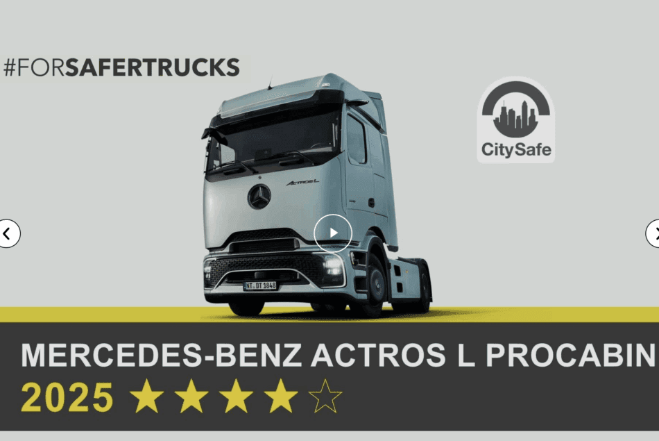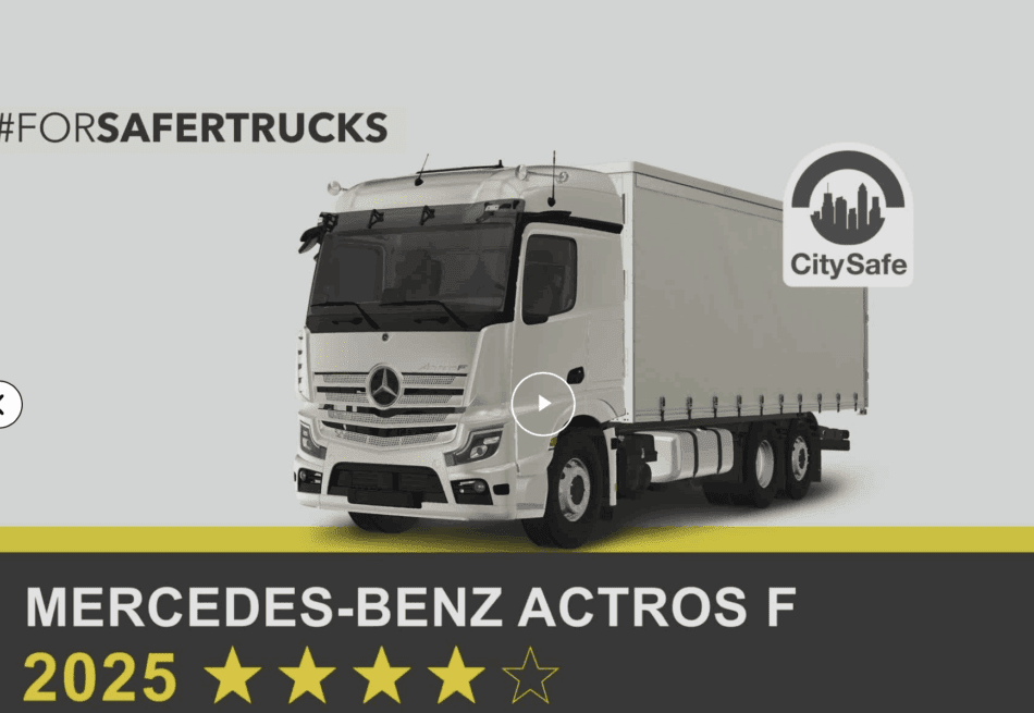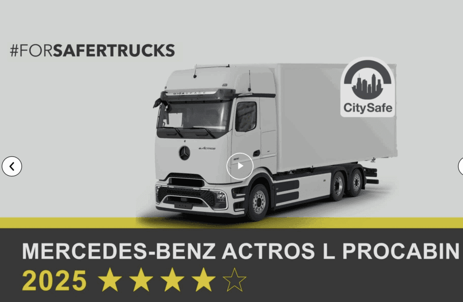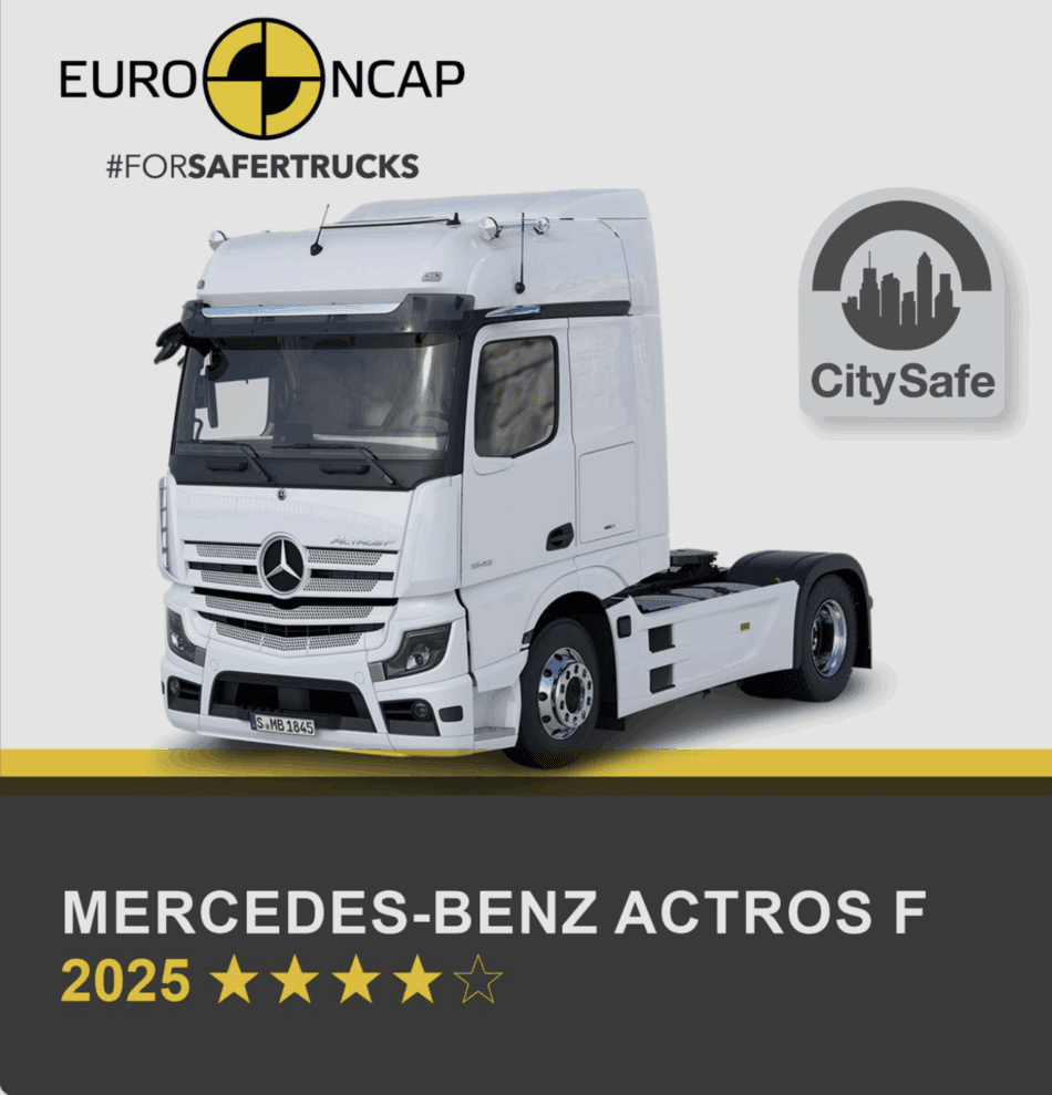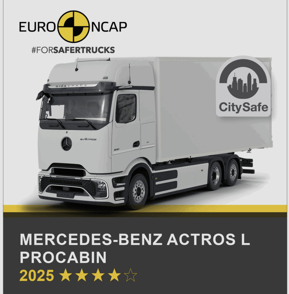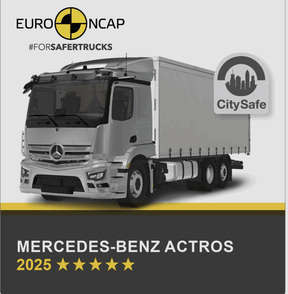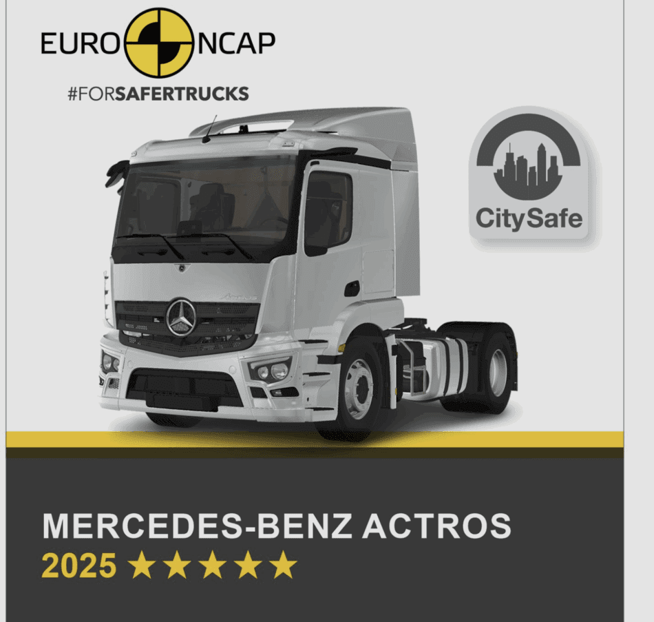 In only its second-ever test of heavy goods vehicles (HGVs), Euro NCAP’s experts found that improvements made to the design and safety equipment of the Mercedes-Benz Actros since it was first tested in 2024 meant it achieved a maximum five-star rating.