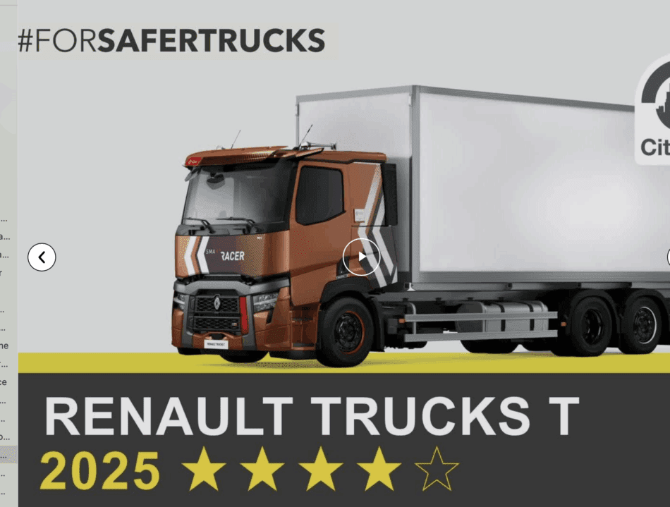 Renault’s T model now comes with a nearside cyclist detection system that can help prevent serious city crashes with a cyclist falling under a turning truck. This enhancement has earned the four-star Renault T a CitySafe award.