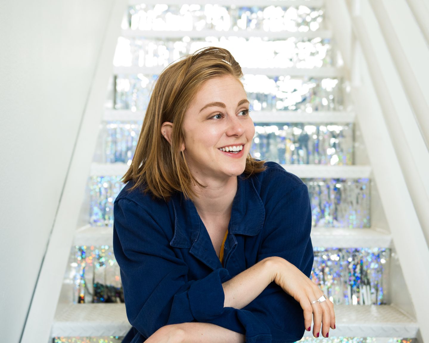 Simone Giertz works on her “gold star” calendar, which she’s launching a Kickstarter for this month.