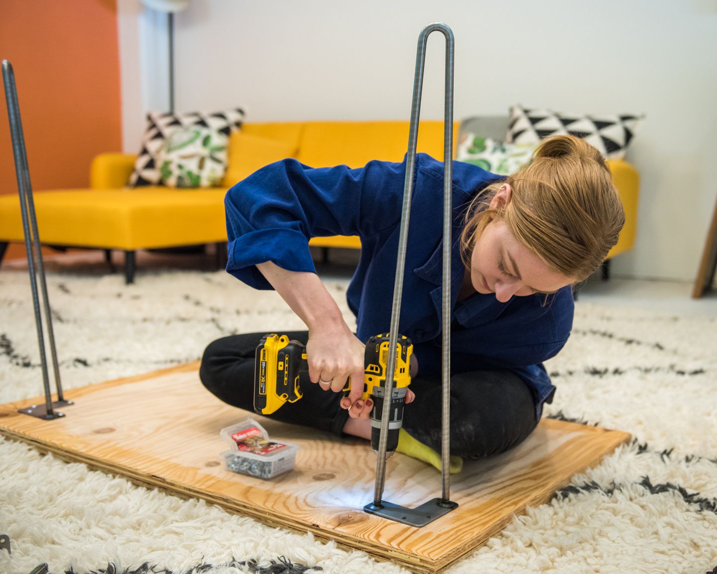 Giertz assembles her “ugly desk” for a video. JESSICA CHOU/MASHABLE