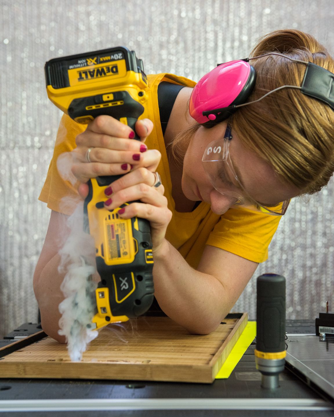 Simone Giertz works on one of her new inventions. JESSICA CHOU/MASHABLE