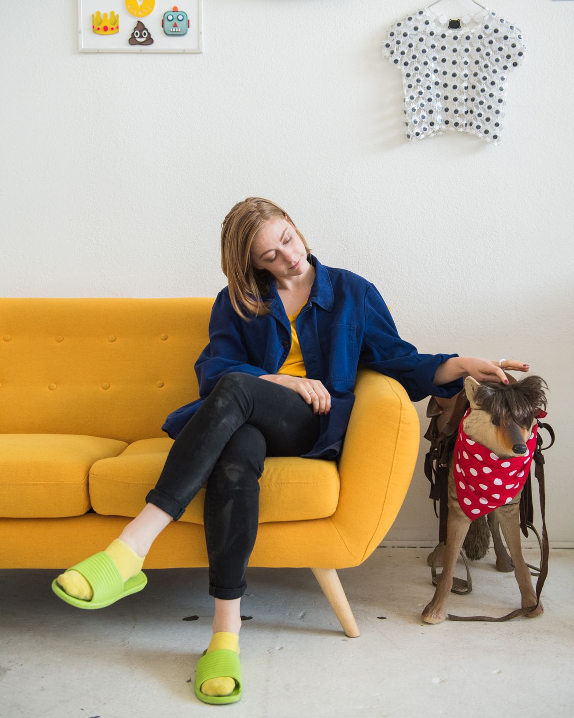Simone Giertz pets her inanimate companion. JESSICA CHOU/MASHABLE