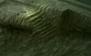 “The possible skid tracks start 1500 meters (4,921 feet) south and travel north where they end at each of the two more well-known anomalies. At the point of convergence 1500 metres away there is actually another anomaly which looks like a huge rock approx. 90 feet high and 900 feet in diameter with a big crack running through it approx. 120-180 feet wide and 60 feet deep. And yes, the crack’s direction are the same as the ‘tracks.’ – quote from Peter or Dennis. There is a is a craggy undersea mountain, possibly volcanic in origin, located south ca. 1500 metres away, at the point of convergence from the two anomalies. It is approx. 28 meters high and 275 meters in diameter with a big crack which appears to be broken and split in the middle running through it, approx. 37-55 meters wide and 18 meters deep. The crack’s direction is the same as the ‘tracks’. It is suggested by those who believe in the UFO/USO theory, that this could be the point of impact, or separation of Anomaly 1 and 2, if in fact they were joined. It has also been “rumoured” that there is also a line marking on the side of the object reflecting what could be a “gouge” mark from hitting the mountain. (Please note: this information has not been officially confirmed!)