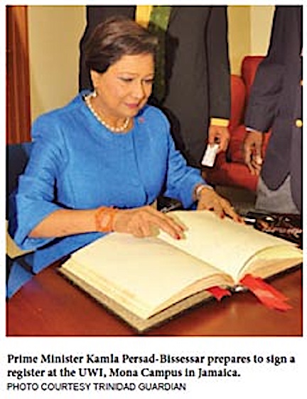 Related News: Prime Minister Kamla Persad-Bissessar Inducted into The UWI Park of Honour at Mona in August 2012.