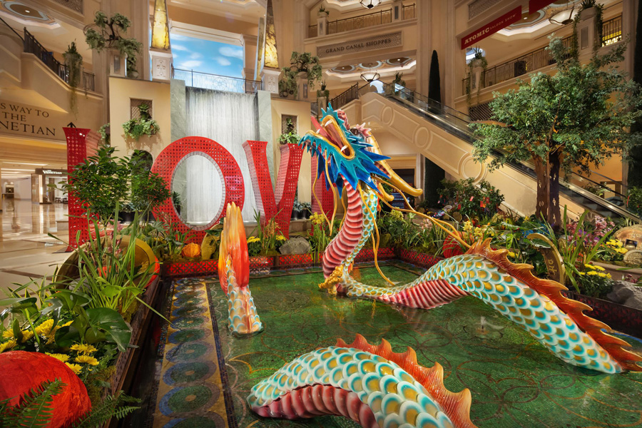 The Venetian Resort Las Vegas has transformed its waterfall atrium and gardens for Lunar New Year. A partnership between the resort’s floral and horticulture team, artisans and a feng shui master, the Year of the Tiger installation features a grand tiger, weighing 1,500 pounds and standing 10 feet tall and 13 feet long.