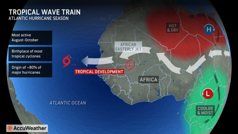 AccuWeather® Global Weather Center – Aug. 8, 2025 – As tropical wave activity ramps up off the coast of Africa and conditions in the Atlantic become more conducive for tropical development, AccuWeather® hurricane experts now forecast three to five named storms to form during the month of August