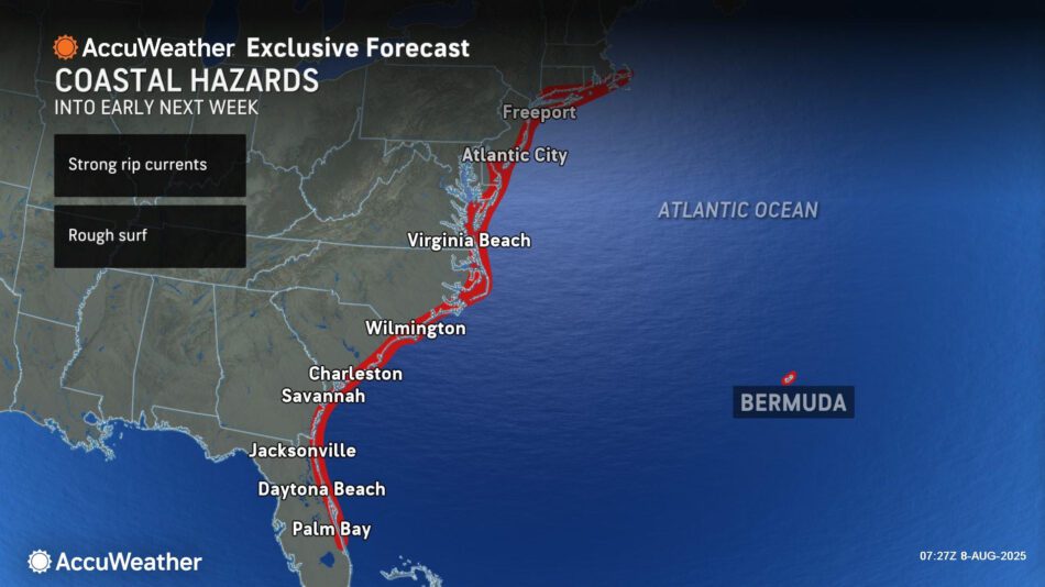 Regardless of tropical development, rough surf and strong rip currents are likely at times along much of the East Coast this week from Florida to Cape Cod in New England through the weekend.