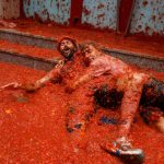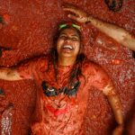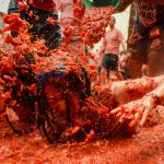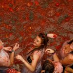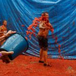 IMAGE: Revelers throw tomatoes at each other, during the annual “Tomatina”, tomato fight fiesta, in the village of Bunol, 50 kilometers outside Valencia, Spain. (Photo: AP)