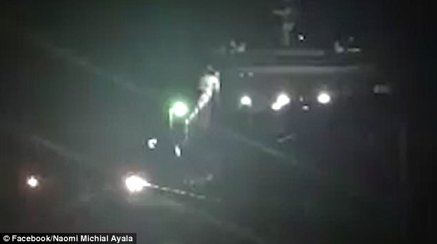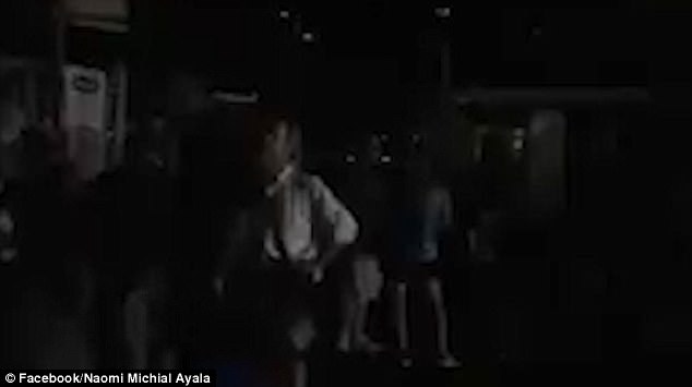 A video filmed and posted on Facebook by Naomi Michial Ayala, from Dallas, Texas, shows the lights turned off at the pier after they had been refused to board.