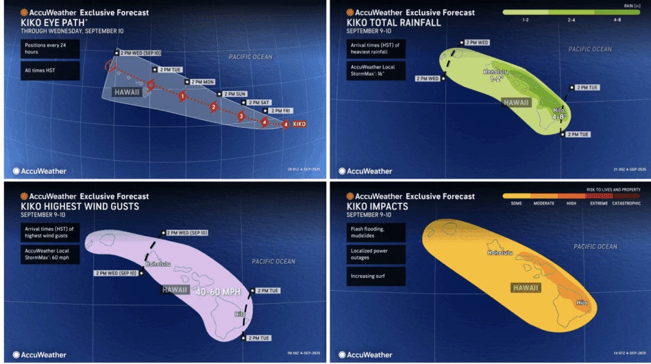 Hurricane Kiko to impact Hawaii with wind, rain before mid-September