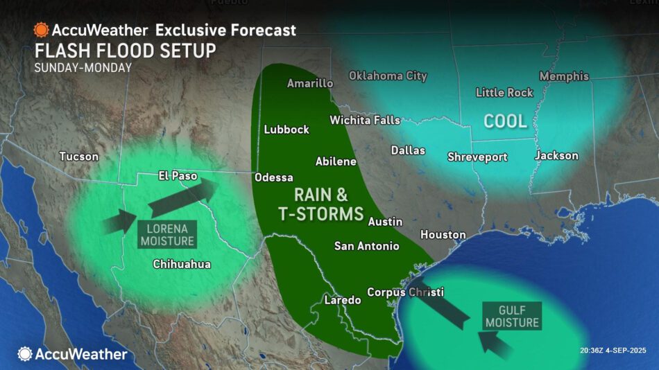 Residual tropical moisture from Lorena can be drawn into the complex of thunderstorms, as well as an influx of tropical moisture from the Gulf. This dangerous combination could trigger flooding issues, especially in areas with steep terrain and arid soils like the Texas Hill Country,” Porter said. “Residual spin in the atmosphere from Lorena, what meteorologists refer to as vorticity, can result in pockets of more intense lift in the atmosphere, promoting heavy rain episodes. When this type of setup is coupled with abundant tropical moisture, as we expect over Texas this weekend, rain rates of 2 to 3 inches of rain per hour can occur, leading to significant flash flooding and rapidly rising water. More extreme flash flooding can occur in localized areas near the most persistent downpours.”