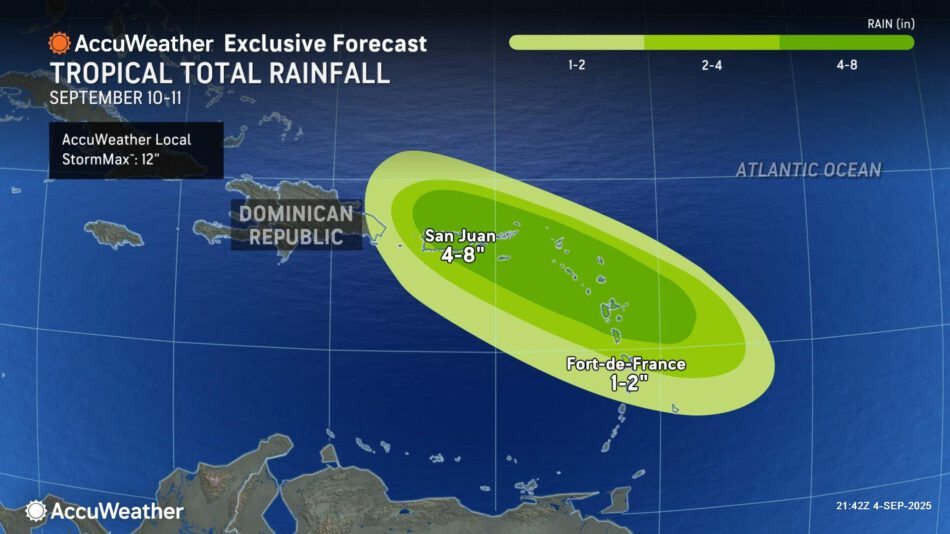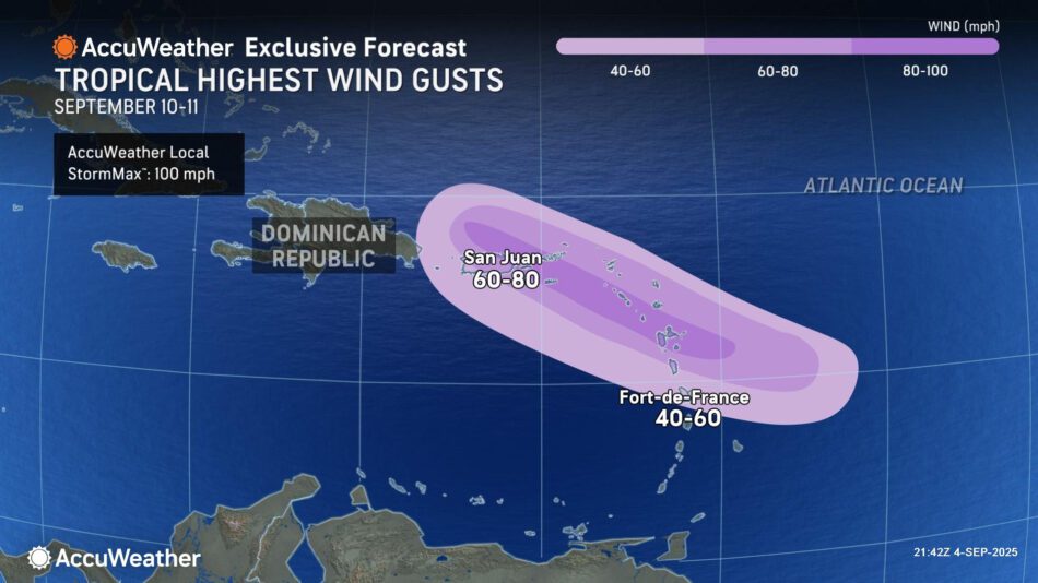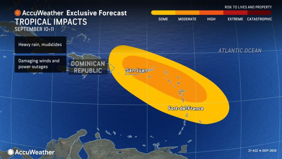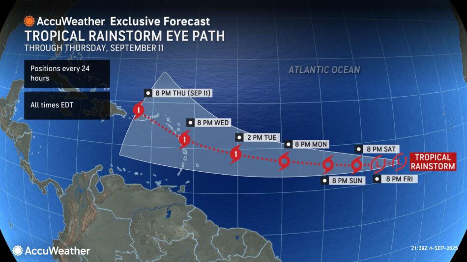 “The tropical rainstorm moving through the Atlantic is forecast to strengthen into Tropical Storm Gabrielle this weekend or early next week,” DaSilva said. “This storm is expected to strengthen into a hurricane next week as it moves through very warm waters. People in the Lesser and Greater Antilles and northeast Caribbean should be on alert and follow forecast updates closely. This storm could bring wind and rain impacts to some of the islands next week.”