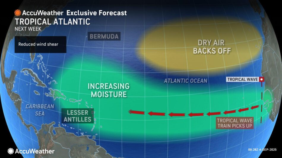 Another tropical wave is expected to push off the coast of Africa next week. This wave will likely encounter less dry air and move through an area with conditions that are conducive for tropical development in the Atlantic,” DaSilva said.
