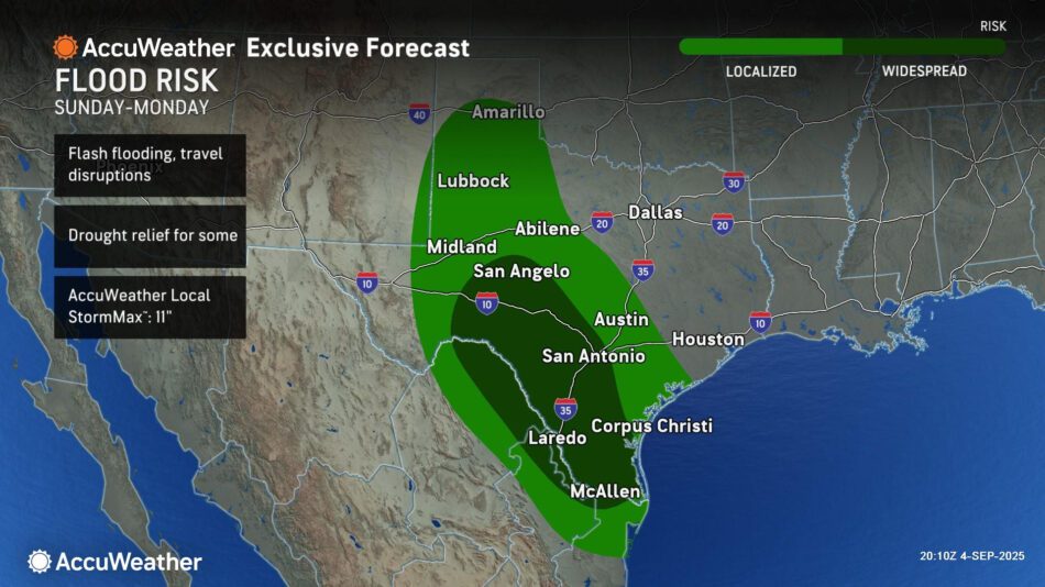 AccuWeather® Chief Meteorologist Jonathan Porter says a slow-moving complex of thunderstorms producing persistent downpours can develop Sunday afternoon across central Texas and then move into South Texas on Sunday night into Monday.