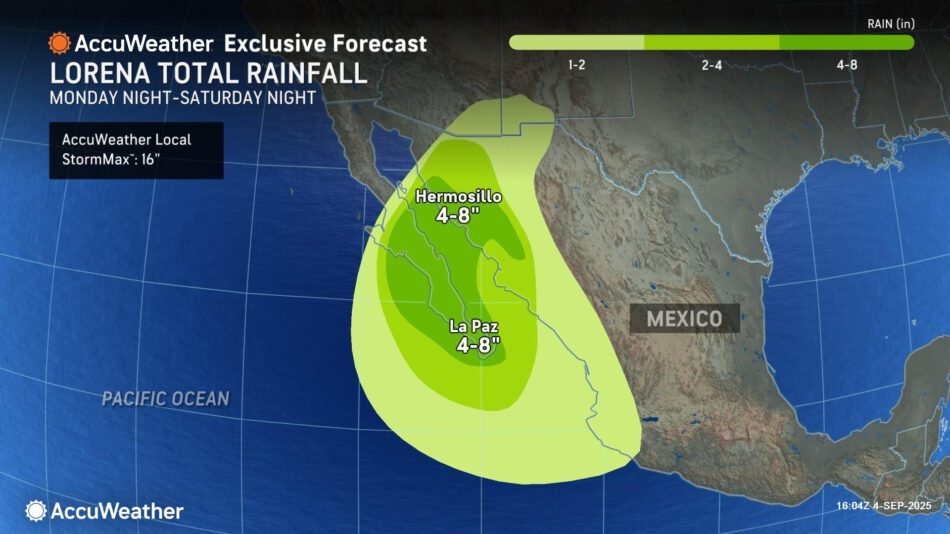 “Lorena is quickly losing wind intensity as it approaches the coast of western Mexico. Areas across western Mexico could see 4 to 8 inches of rainfall and possible flash flooding,” AccuWeather® Lead Hurricane Expert Alex DaSilva said.