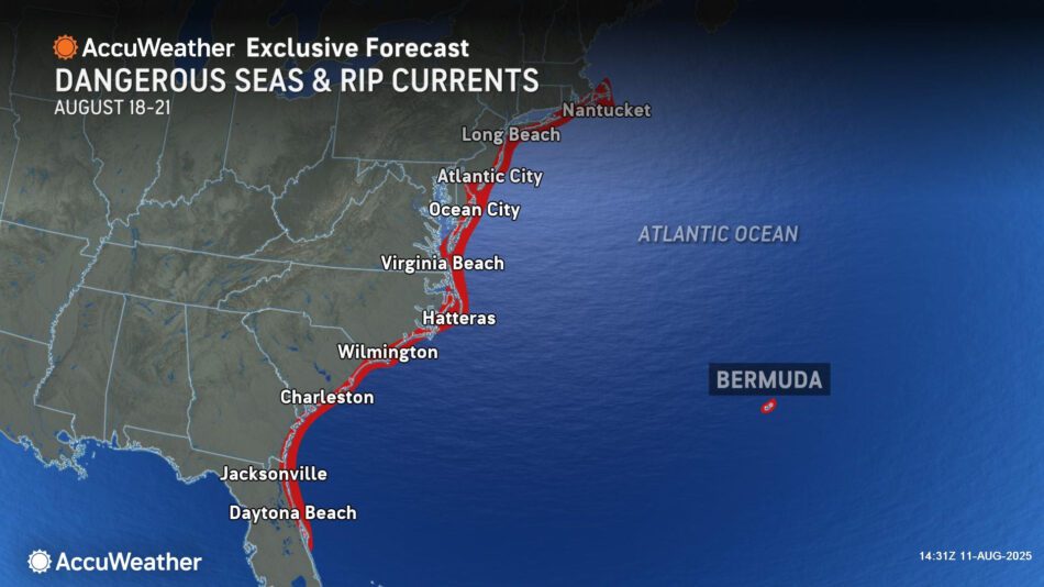 “Families heading to Atlantic beaches before heading back to school should be cautious and stay in areas with lifeguards on duty. Erin will likely bring rough surf and dangerous rip currents to many beaches in Florida later this weekend. The risk of rough surf and rip currents will expand along much of the East Coast over the weekend into next week,” DaSilva warned.