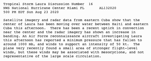 AIR FORCE HURRICANE HUNTER AIRCRAFT FINDS A SLIGHTLY STRONGER LAURA JUST SOUTH OF EASTERN CUBA… …HEAVY RAINFALL AND LIFE-THREATENING FLASH FLOODING LIKELY OVER THE DOMINICAN REPUBLIC…HAITI…CUBA…AND JAMAICA