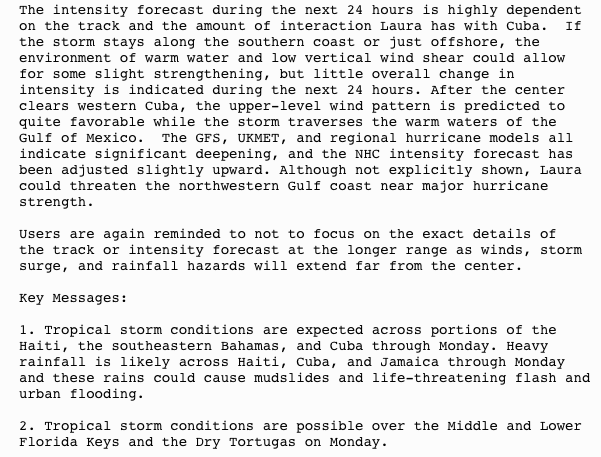 While Laura may lose some wind intensity due to interaction with land as it continues its journey across the northern Caribbean, forecasters say the impacts of the storm are likely to be the same, regardless of wind intensity.