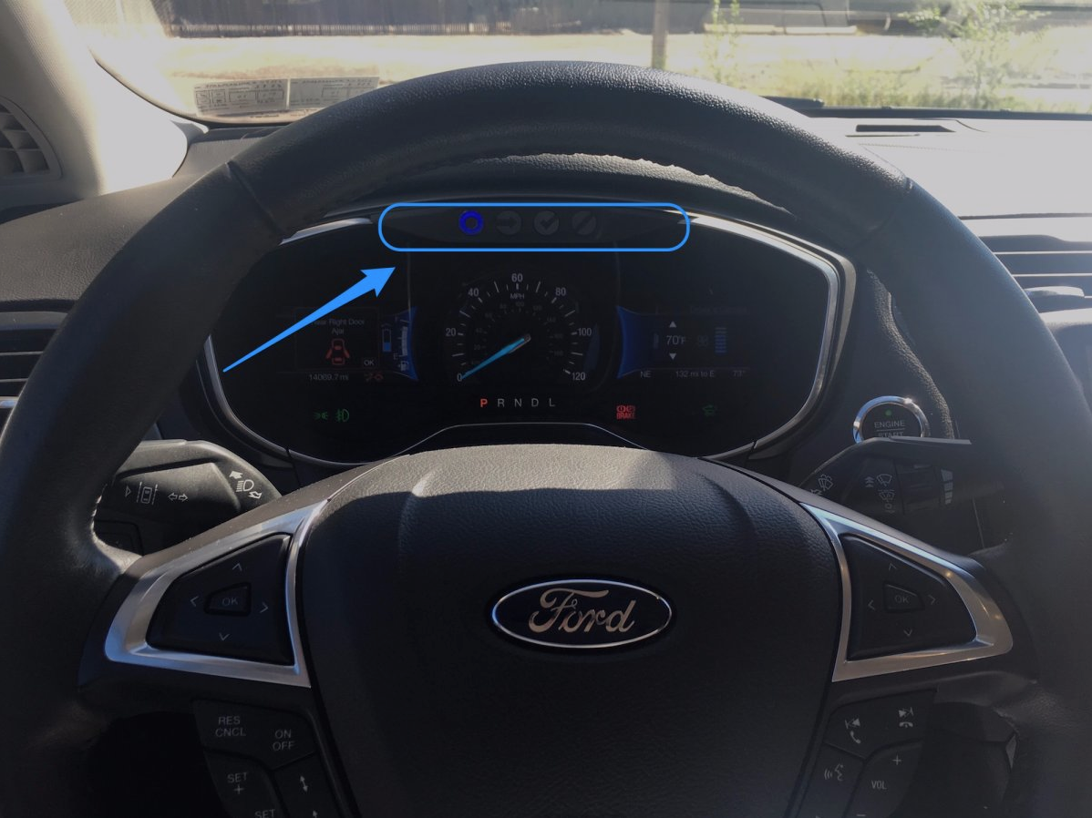 Uber gave us a chance to hop behind the driver’s seat, and aside from a few additions it looks relatively normal. One thing that stands out is a toolbar behind the wheel of the car that indicates whether the car is in autonomous mode or not. If you see a green checkmark, the car is in control. But a blue dash indicates it’s in manual mode and you should be making the decisions.