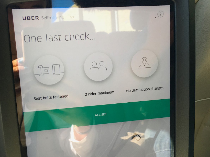 Once you confirm you’re abiding by the driverless car rules, the display will show information like trip details, the route, and planned turns for the purpose of making “riders feel comfortable and safe,” said Emily Bartel, product manager at Uber ATC.