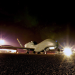A US Air Force RQ-4 Global Hawk aircraft assigned to the 99th Expeditionary Reconnaissance Squadron, sits on the flight line during pre-flight checks Nov. 23, 2010, while deployed at an undisclosed location in Southwest Asia.