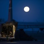 Beneath the light of a full moon, Airmen from the 19th Airlift Wing prepare a C-130J Hercules for a flight March 27, 2013, at Little Rock Air Force Base, Ark.