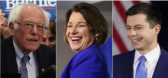 Finishing behind Vermont senator Mr Sanders were two moderates – Mr Buttigieg and Minnesota senator Amy Klobuchar, who emerged as a surprise contender by taking third place.