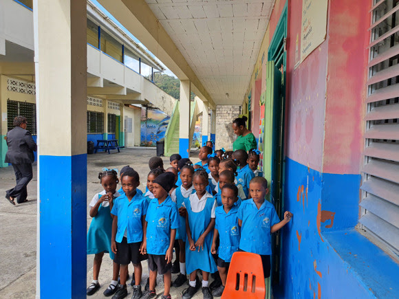 Monday, February 17, 2020 — USAID representative to the Eastern and Southern Caribbean Clinton White met with students and teachers at the Bishop Charles Gachet RC Primary School on February 6 in Marchand to see firsthand the benefits of the OECS/USAID Early Learners Program (ELP), an $8.9 million initiative to improve the reading skills of primary grade children. Mr. White also discussed USAID funded programs with St. Lucian government officials and OECS Director General Didacus Jules.