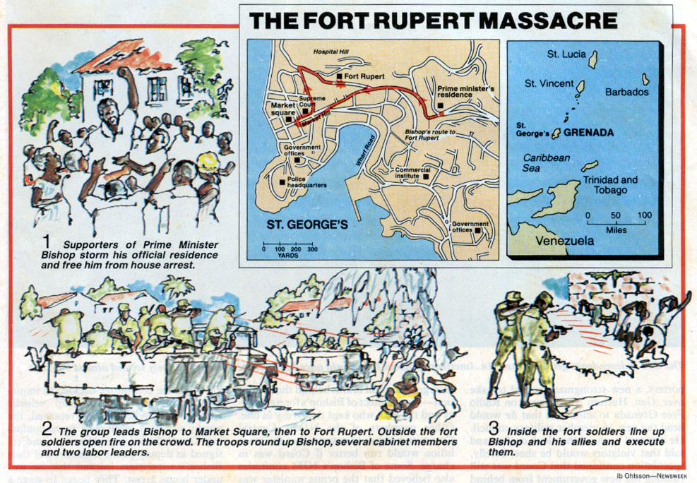 The US invasion of Grenada followed the killing of Prime Minister Maurice Bishop by a firing squad on October 19, 1983, along with three members of his Cabinet and four others during a bloody upheaval.