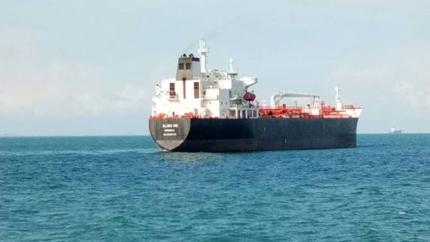 At 182m (600ft), the tanker is slightly longer than the 154m-long US destroyer.