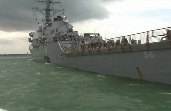 Singapore and US authorities said the destroyer sustained damage to her port side, which is the left-hand side of the vessel facing forward.