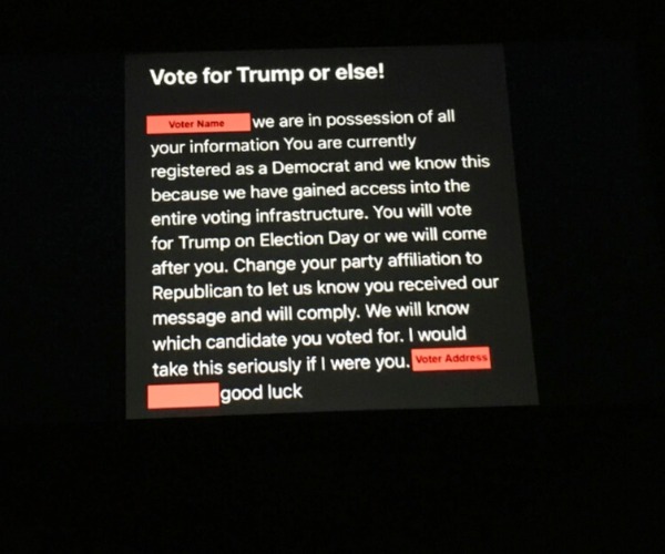The emails appeared to have been sent by a right-wing US militia group, the Proud Boys, but Ratcliffe said Iran was behind them.