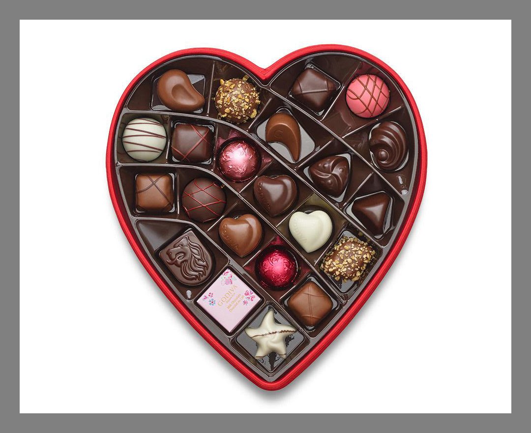 You can’t go wrong with a classic, heart-shaped box of Godiva chocolates.
