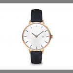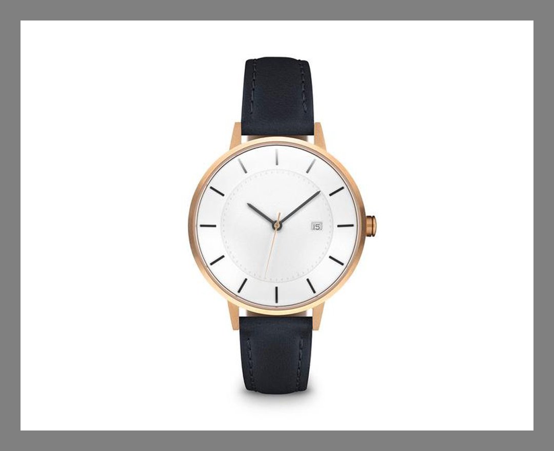 If you have some money to spend, but not a ton, Linjer’s timepieces look great on a wrist. This one comes with a navy leather strap and rose gold case. It’s simple, but eye-catching.