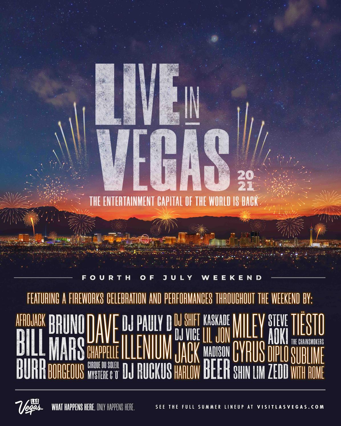 In addition to celebrating Independence Day, the destination will be celebrating the return of live entertainment as Las Vegas reopens to 100 percent capacity. On June 1, Clark County, which includes the Las Vegas metropolitan area, returned to pre-pandemic guidelines, removing all restrictions involving capacity limits, large gatherings and more.