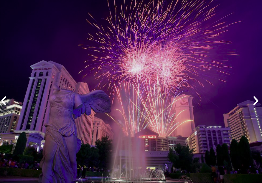At 11 p.m. July 4, Las Vegas will launch a themed, coordinated fireworks spectacular from the rooftops of ARIA Resort & Casino, Caesars Palace Las Vegas, Planet Hollywood Resort & Casino, Resorts World Las Vegas, The STRAT Hotel, Casino & Skypod, Treasure Island Las Vegas and The Venetian Resort Las Vegas.