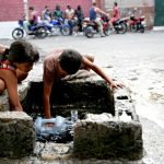 Children fill plastic containers with water from a well on a street in the slum of Petare in Caracas. (Carlos Garcia Rawlins / Reuters)