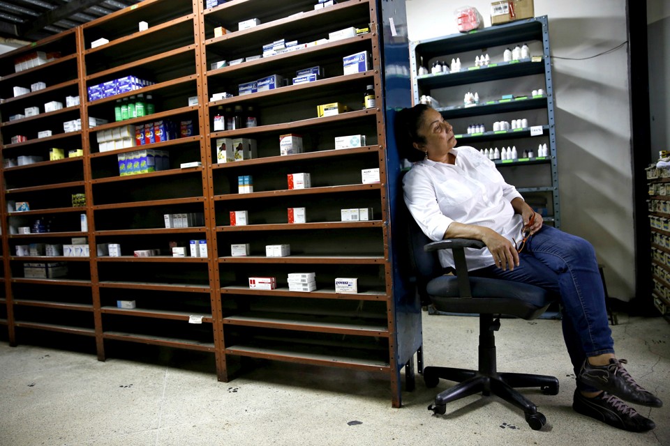 A pharmacy employee waits for customers at a drugstore in Caracas. (Noel West / Reuters)