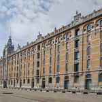 At the turn of the 20th century, however, the site was turned into a port, and the buildings became warehouses, a train station, and maritime station. At its height during the 1960s, over 3,000 people worked there. But by the ’70s, Europe had lifted most trade barriers and manufacturers began seeing increased competition from road freight transport, which rendered most of Tour and Taxis’ customs and transit facilities obsolete. The site was abandoned in the ’80s.