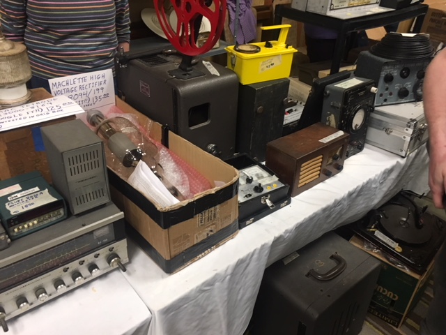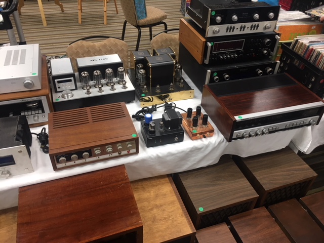 Researching and writing theoretical and historical pieces is a lot of work, and can get a little dry. As a change of pace, I present pics from Vintage Voltage, a local meet held Sunday, March 18, which included the annual show of the Colorado Radio Collectors Club, and then branched off into guitars, hi-fi, records, test gear, and more. I’ve skipped the record vendors, as they basically all looked alike; I also skipped the guitars for the most part, as to my uneducated eye, it looked like pretty mundane stuff—apologies if it wasn’t, but how many Strats can you look at without lapsing into geeky fervor over minutiae?