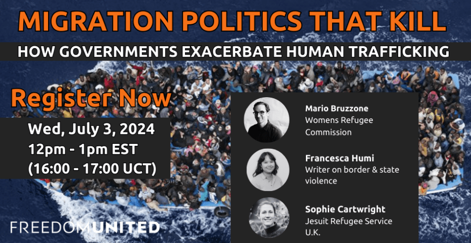 Register for our special panel on Migration Politics that Kill: How governments exacerbate human trafficking.