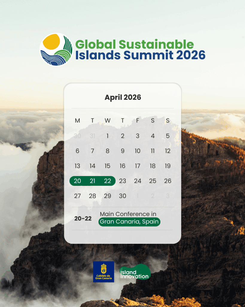 | Gran Canaria will host the Global Sustainable Islands Summit 2026, in partnership with Island Innovation, bringing delegates on-site to experience these initiatives firsthand. Beyond the panels, GSIS2026 offers a unique opportunity to connect with global leaders, investors, and practitioners working at the forefront of sustainable economic development and innovation.Use the code GSIS2026-VIS2025-SPECIAL for 30% offuntil Friday, September 19th! |