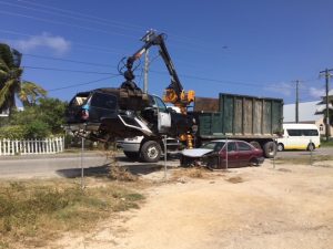 Following this clean-up, another group of concerned community members approached the West Bay Community Officers about addressing the ongoing issue of derelict vehicles in the district. Community police officers then worked with these residents to organize the collection of vehicles in one area, while at the same time facilitating the assistance of the Department of Environmental Health (DEH) to have the unsightly vehicles then removed to the landfill. On Monday a number of derelict vehicles gathered from throughout the district were parked along West Church Street outside the West Bay Police Station, waiting for removal to the landfill by the DEH.