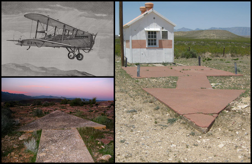 In the 1920s, America began coast-to-coast Airmail service, but the pioneer pilots had trouble navigating the route, since navigation charts of the day were fugazi and you couldn’t exactly pull over to ask a farmer for directions. And traveling at night, when it would have been most efficient, or in bad weather was impossible. To solve this Congress then funded these gi-normous arrow-shaped Airmail Beacons, some up to 70 feet long, to trace a route across the country.