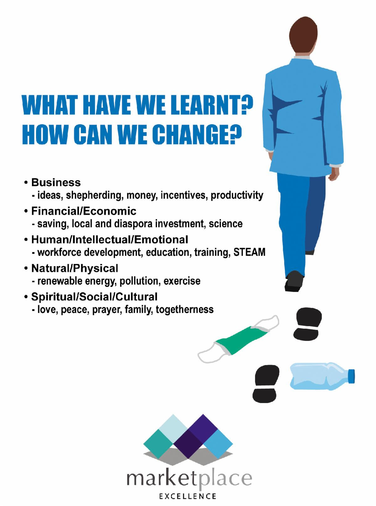 | “Do not be conformed to this world, but be transformed by the renewal of your mind, that by testing you may discern what is the will of God, what is good and acceptable and perfect.” – Romans 12:2 On October 16, 2017, I penned a column entitled TIME FOR CHANGE NOW. More than two years hence, we have an even greater challenge in search of a sustainable economic path. Over the last two to three months, the COVID-19 intervention has forcibly induced a new modus operandi where the majority of the population has been under a “Stay-at-Home” public order and our borders closed in an attempt to contain the spread of the new coronavirus. The economy has predictably declined. For me, this period included quiet reflection as to how we should manage the new norm when the public order is gradually lifted, and the borders reopened. I would like to share with you some food for thought in relation to two compelling questions: “What have we learnt in the process?” and “How can we use this information to effect change?” We need to attract abundance into our business, finance, human/intellectual/emotional, natural/physical/social/cultural, and spiritual health. Business fuels economic growth. We have learnt that business success is driven by revenue and retains its buoyancy by cleverly controlling costs and boosting productivity. We can use this information to aggressively promote entrepreneurship, leveraging the shepherding model where (1) entrepreneurs virtually pitch their innovative ideas with potential to create exports or displace imports; (2) experienced shepherds share their business experience with entrepreneurs and get paid out of future profits (just like a financial investor) while mitigating the risk of business failure and securing the financial investment; and (3) the local private sector and the Diaspora, with government incentives, invest in an expertly managed seed/equity/working capital entrepreneurship fund which further invests in the individual businesses. Financial security brings peace of mind to you and your family. We have learnt that business profitability is the linchpin for financial security. We can use this information to stimulate innovative thoughts of mounting a startup business with your savings from home. Of course, you will need injections of passion, perseverance and patience as you optimize your business and reinvest your profits in the business on your way to success. The human resource is the most important resource, we must develop it to the fullest. We have learnt that certification that is not tied to employment is a workforce development waste. We can use this information to adopt a STEAM (science, technology engineering, arts, and mathematics) approach. STEAM uses project-based teaching to holistically foster students’ skills in creativity, design thinking, technical literacy, collaboration, and problem solving. A healthy mind in a healthy body. We have learnt that however sharp the mind is it is eventually of no use to mankind unless it is housed in a healthy body. We can use this information to revise our mix of nutrition, sleep, exercise, peace of mind and touch strategies to maintain physical fitness in the new dispensation. On earth, we are spiritual beings attempting to master a human experience. We have learnt that whatever our physical constraints, the spiritual energy of our being is unaffected. In this midst of despair, let us use this information to embrace love, peace, prayer, family and togetherness in our search for happiness. |