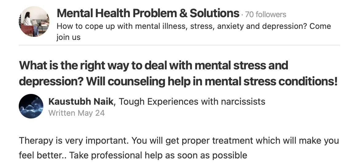 HomepageiCommunityWhat is the right way to deal with mental stress and depression? Will counseling help in mental stress conditions! What is the right way to deal with mental stress and depression? Will counseling help in mental stress conditions! Posted on May 31, 2022 Read More » Read More » Read More » Read more in Mental Health Problem & Solutions LEAVE A RESPONSE Cancel replyYour email address will not be published. Required fields are marked *Comment * Name * Email * Website Post navigation Previous PostCayman student Gabriella Watson to attend SDG summer camp Next PostCuba’s Nonalignment: A Foreign Policy of Peace and Socialism