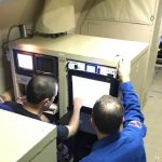 Zawislak and a colleague examine the flight track and check data coming in from their instruments in flight. Jon Zawislak